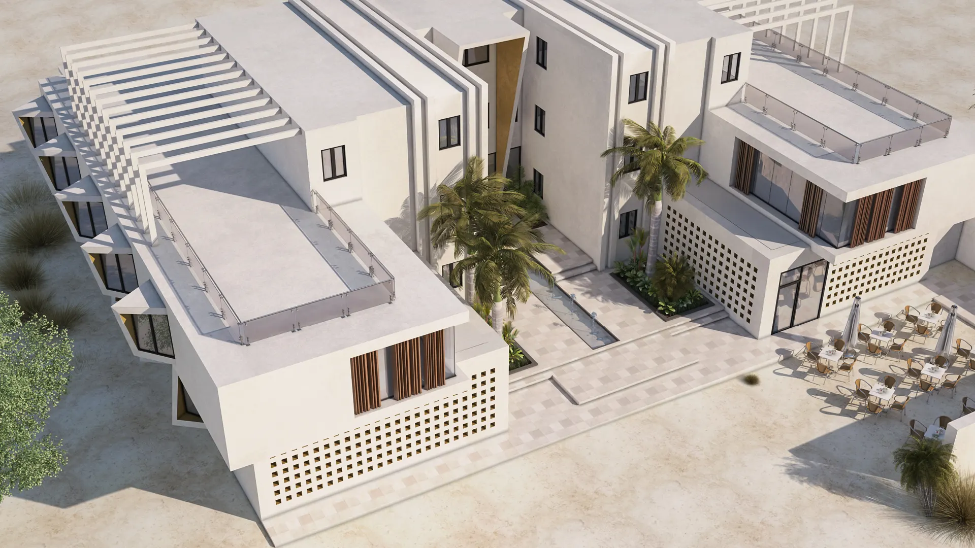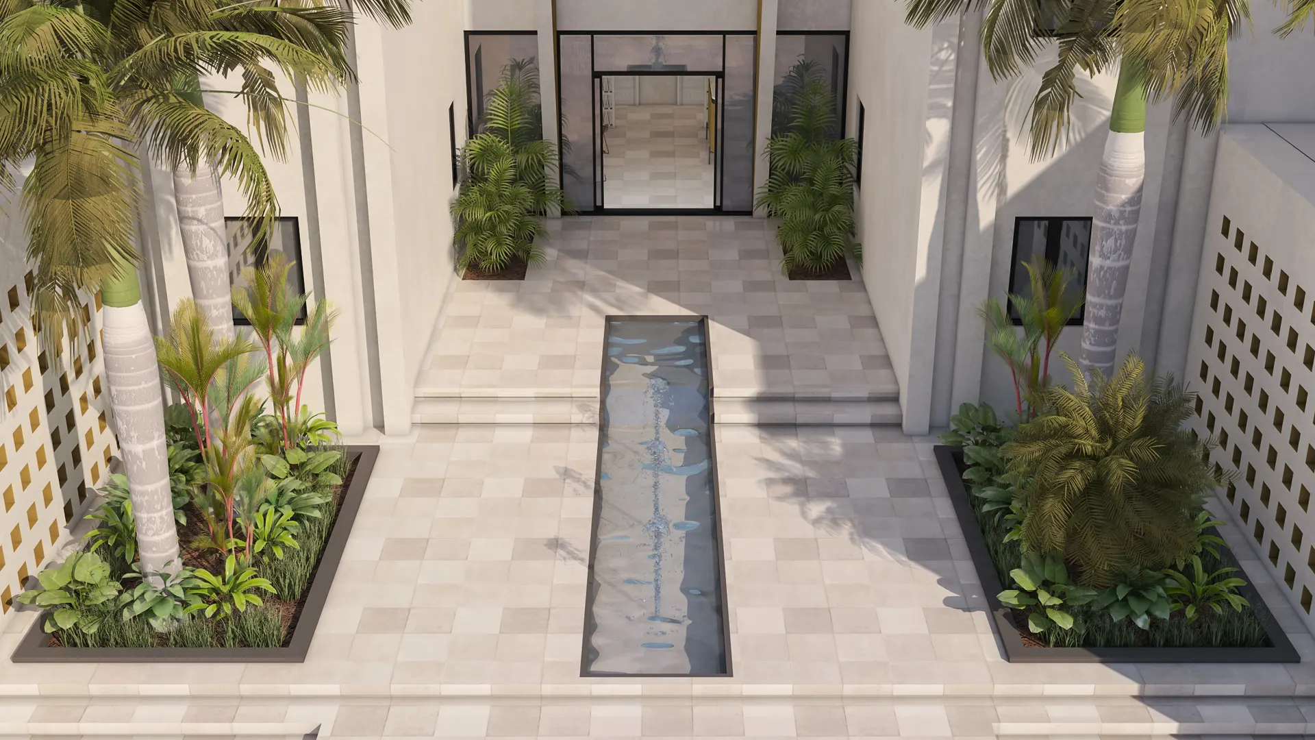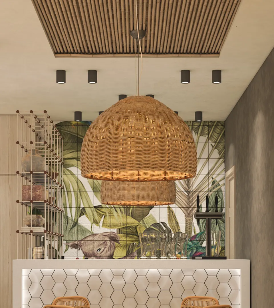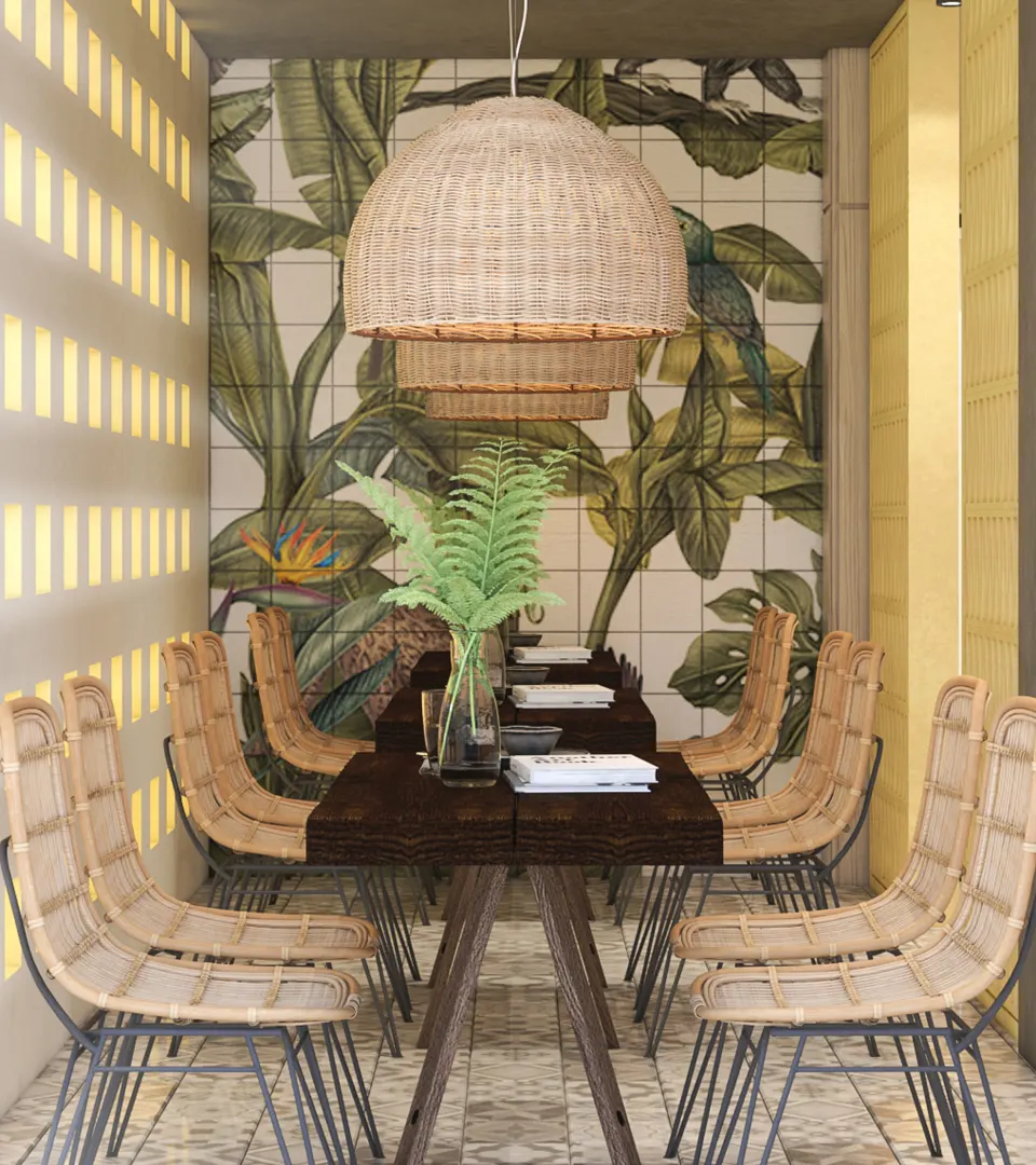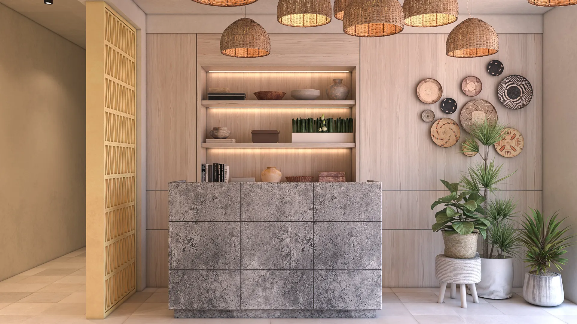The interior design perfectly embodies the American-style pizzeria aesthetic, featuring sleek grey shades, black lines, and rustic wood textures. Our meticulous approach extends to the outdoor seating area, which includes a focal point pergola and lush greenery that serves as a natural centerpiece.