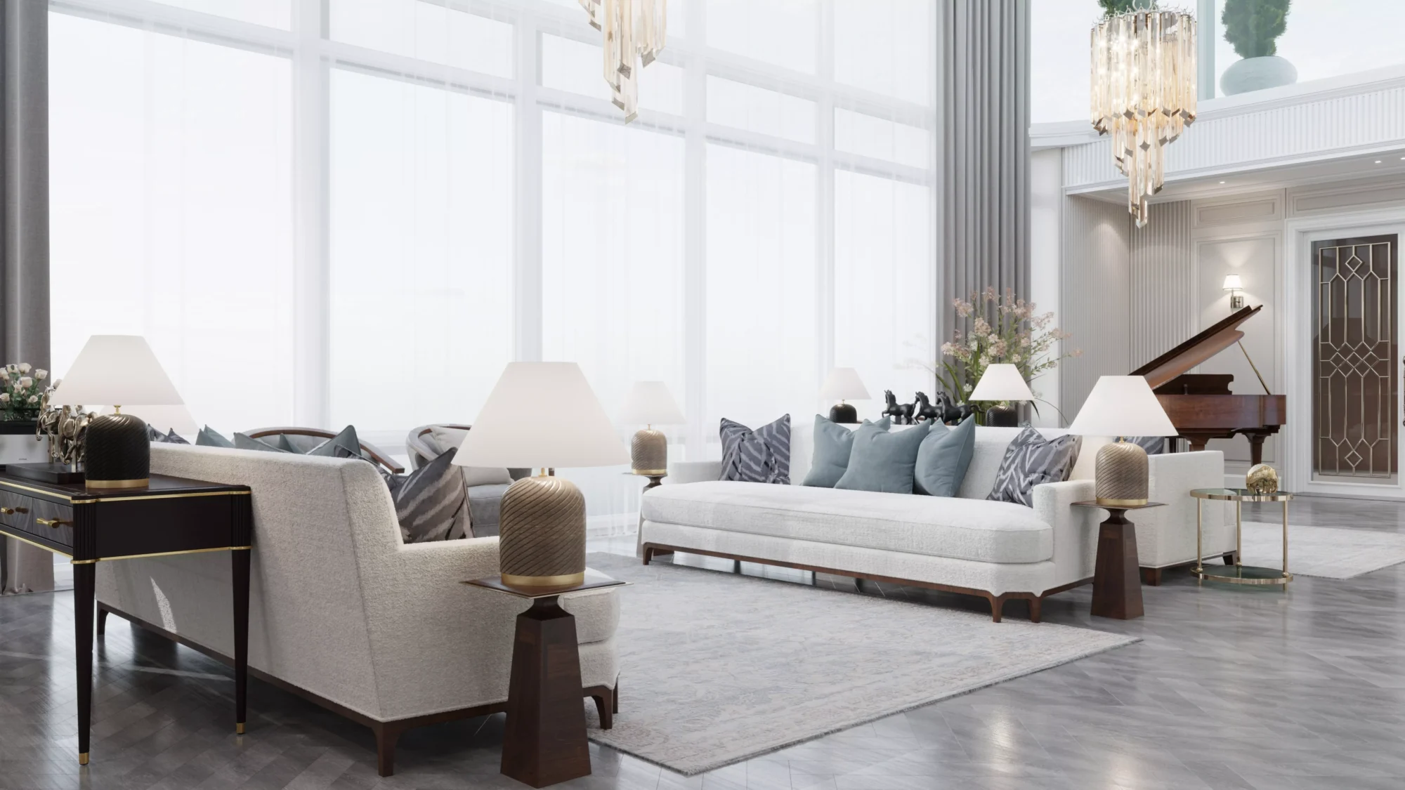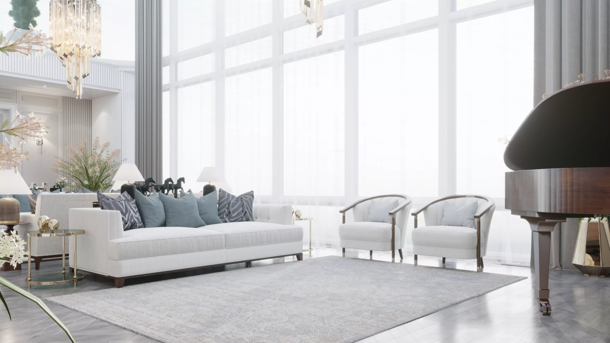 The residential interior design of this penthouse extends to every detail, ensuring that both aesthetics and functionality are prioritized. From the choice of materials to the layout of the space, every element is thoughtfully considered. High-end finishes, custom furnishings, and state-of-the-art amenities come together to create an environment that is both elegant and welcoming. This penthouse in Zamalek is more than just a home; it is a testament to the art of residential interior design, where luxury and comfort are harmoniously intertwined.