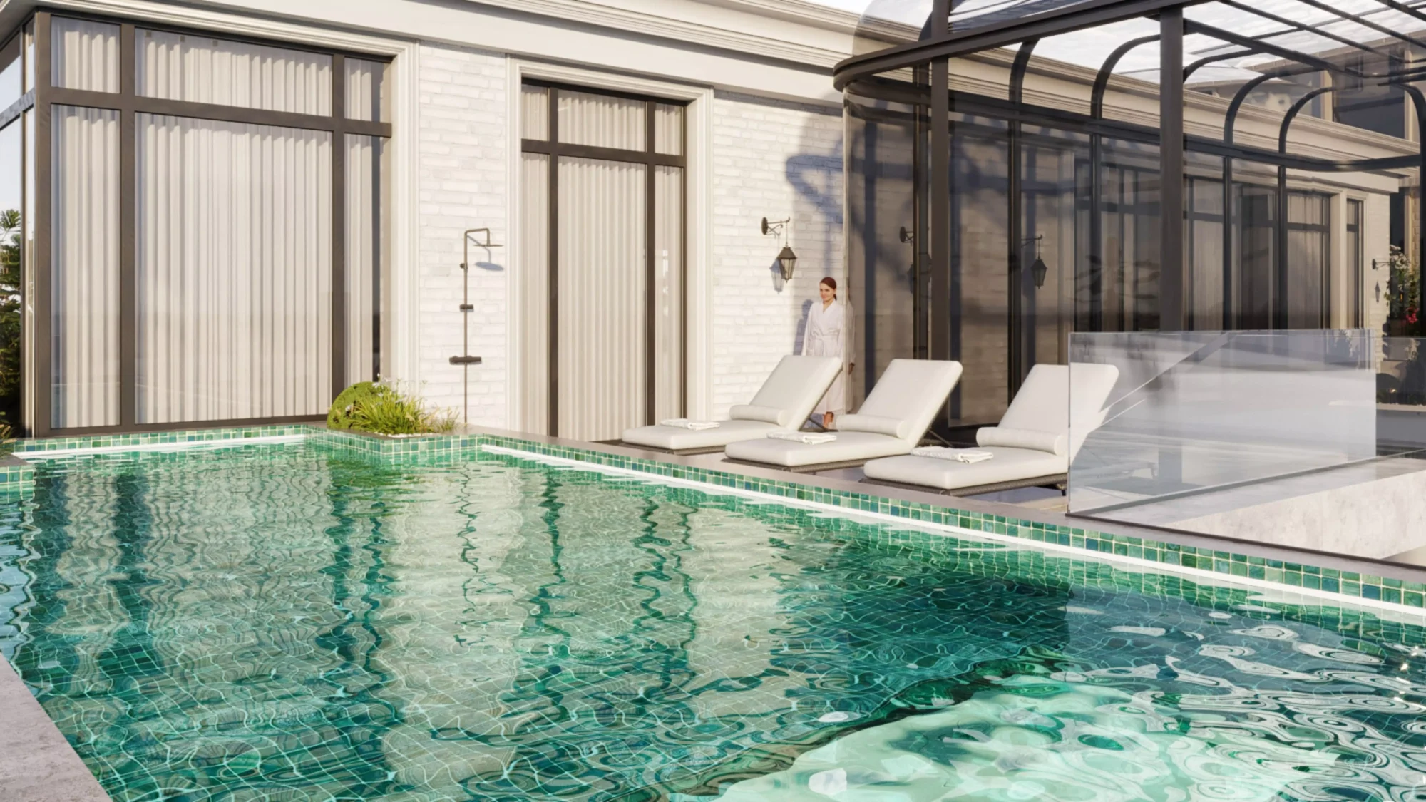 One of the standout features of this penthouse is the 2nd-floor rooftop, where luxury reaches new heights. Here, residents can indulge in a stunning infinity pool, perfect for basking in the sun while enjoying breathtaking views of the Nile River. This rooftop oasis is designed for relaxation and leisure, offering an unparalleled setting for unwinding after a long day. The infinity pool seems to merge with the river below, creating a seamless connection between water and sky.